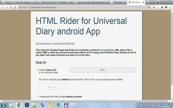 Html Rider for Universal Diaryは、XMLデータファイルをリッチなHTMLにパースするために設計されたChromeブラウザのアドオンです。このシングルページアプリケーションを使用すると、ユーザーはインターネット接続なしで任意のブラウザで表示できる完全に充実したHTMLファイルを生成できます。バックアップzipファイルを便利なフォルダに展開し、data.prファイルを指定するだけで、イラストなしのテキストメモをプレビューして編集することができます。このアプリでは、フォントや色のカスタマイズが可能であり、将来のバージョンではさらなる機能の拡張が約束されています。